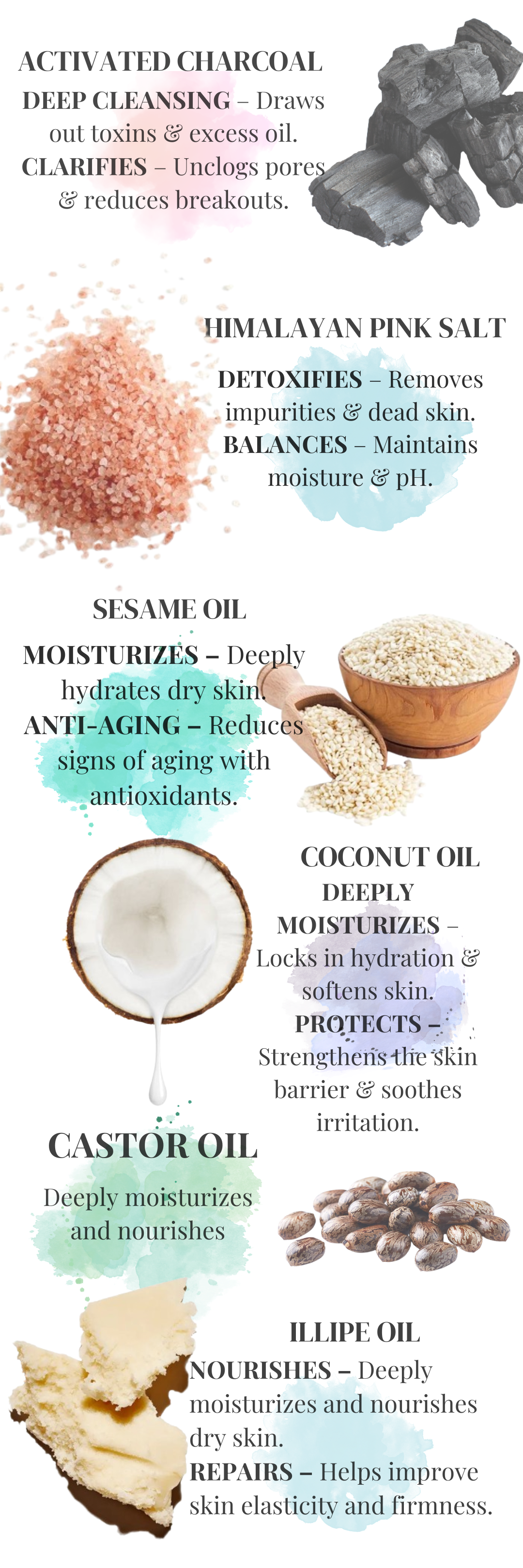 DEEP CLEANSING – Activated charcoal draws out impurities, excess oil, and toxins for a fresh, clean feel.