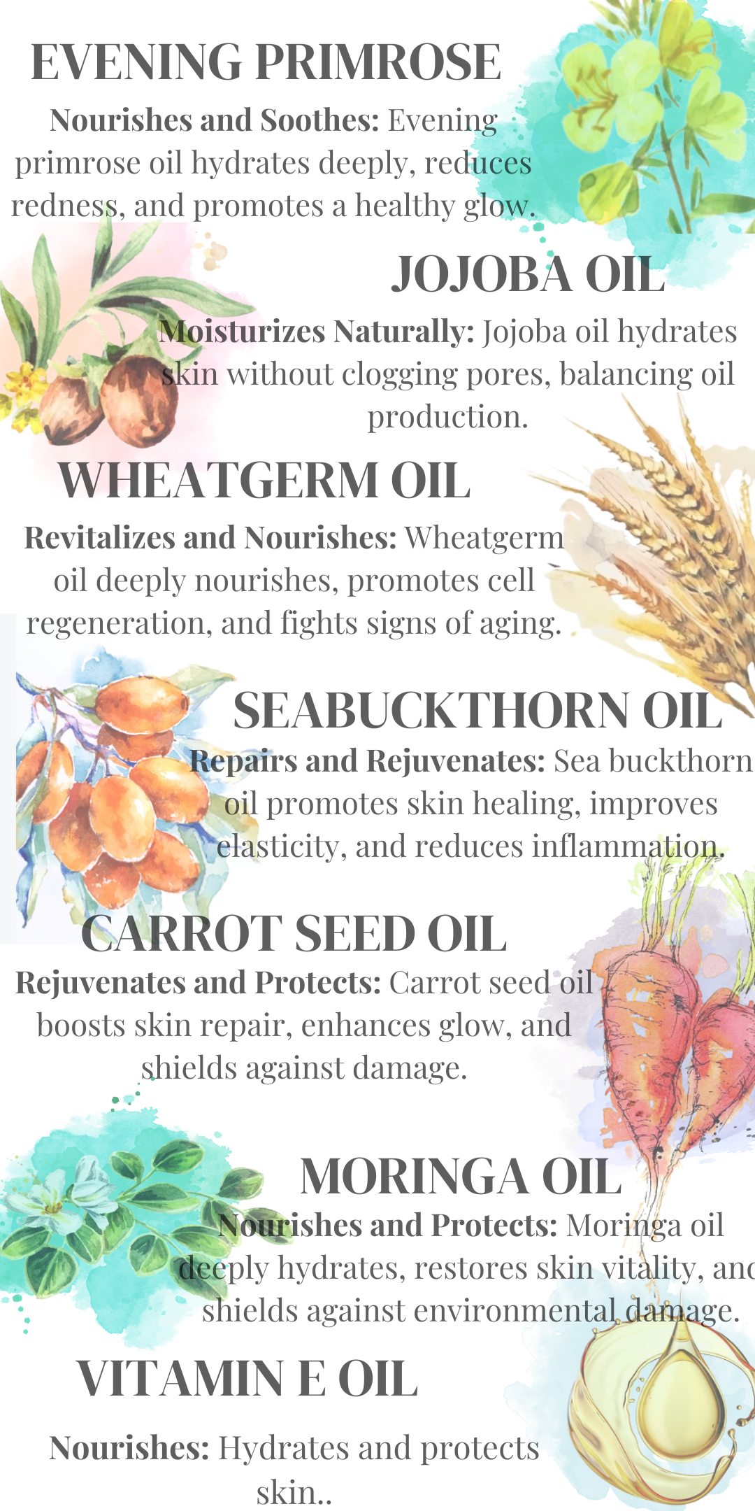 WHEATGERM OIL – Rich in Vitamin E, boosts collagen, and enhances skin texture.