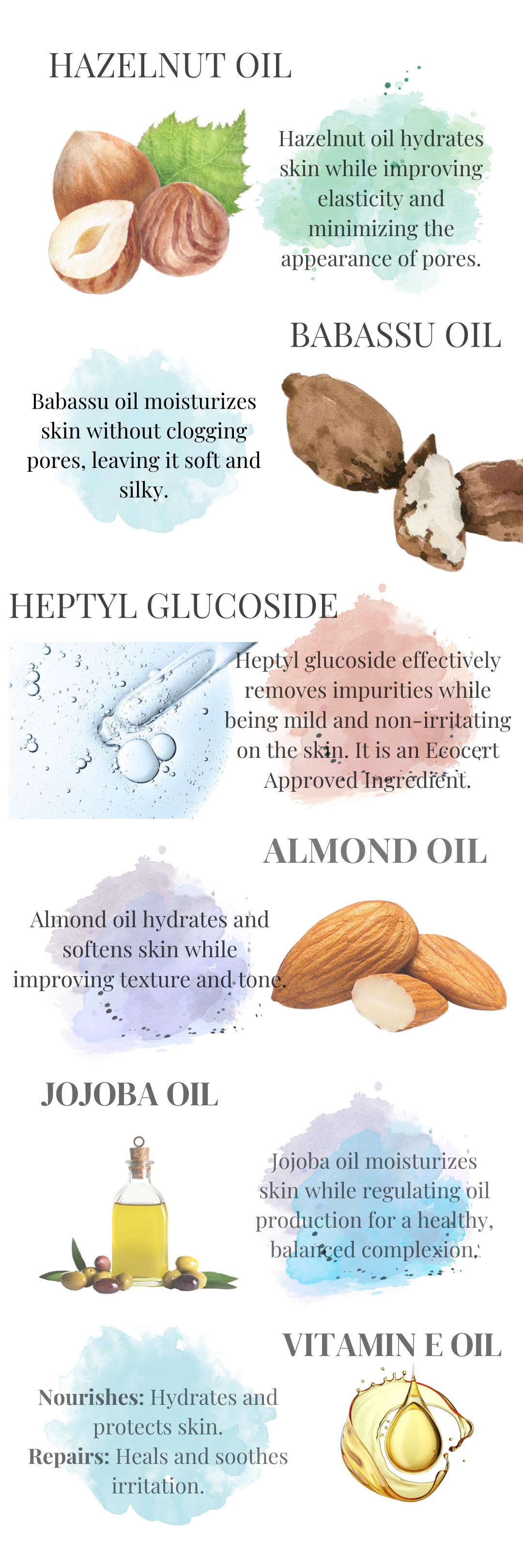 BALANCES OIL PRODUCTION: Hazelnut oil helps regulate sebum, making it suitable for oily and combination skin.