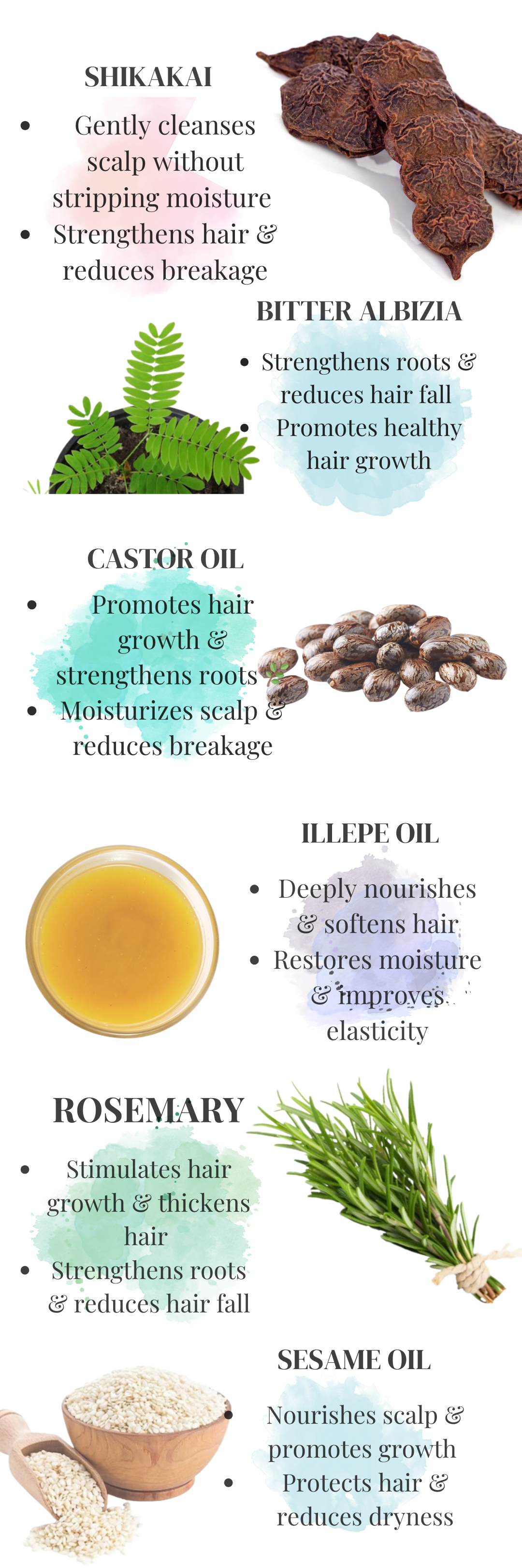 Shikakai, known as a natural cleanser, effectively removes dirt, oil, and buildup while maintaining the scalp’s natural moisture balance.