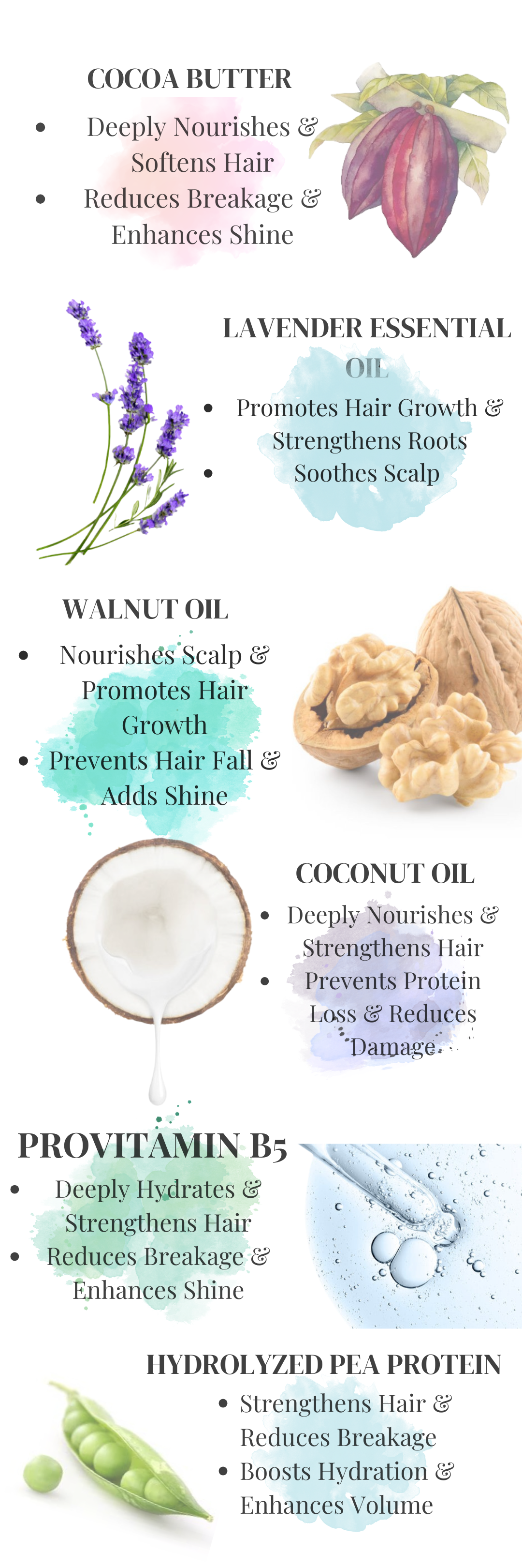 RICH IN VITAMINS & ESSENTIAL FATTY ACIDS – Walnut Oil delivers Omega-3s and antioxidants for healthy hair, while Shea Butter and Cocoa Butter provide vitamins A, E, and F for intense nourishment.