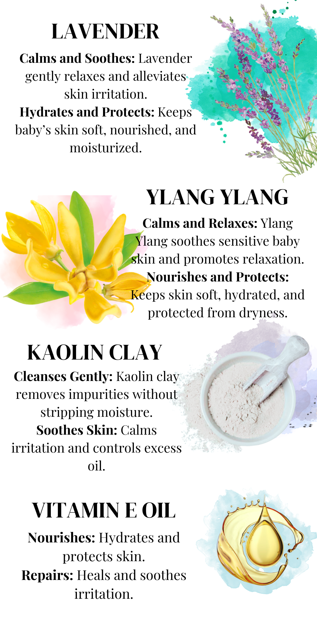 SOOTHES AND CALMS: The combination of lavender and ylang ylang has natural soothing properties, helping to calm and relax your baby’s sensitive skin.