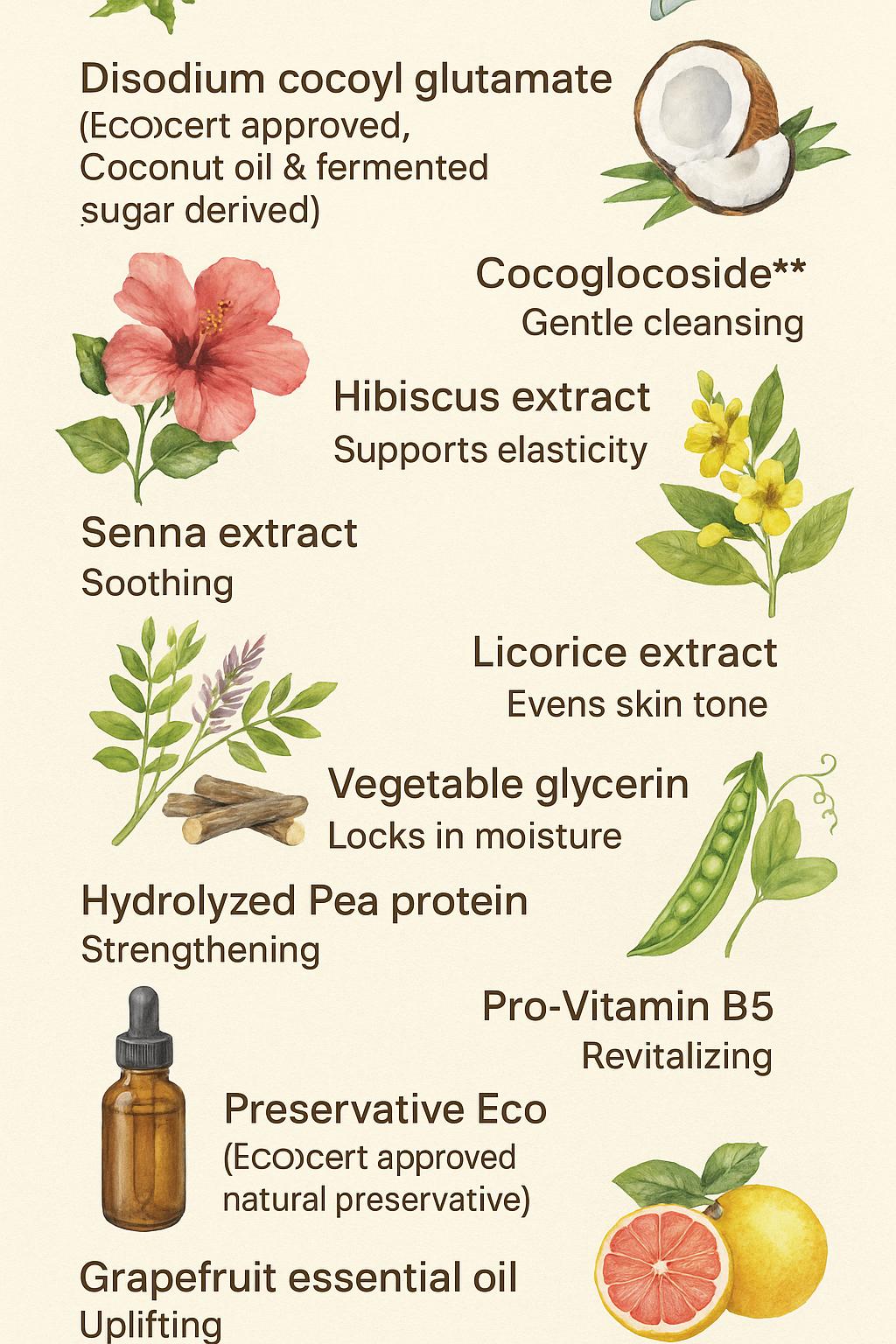 Formulated with Senna (Cassia angustifolia) and Hibiscus (Hibiscus rosa-sinensis) — two of nature’s most potent skin-loving botanicals — this face wash gently lifts away impurities while nurturing your skin with antioxidants, natural AHAs, and plant-based hydration.