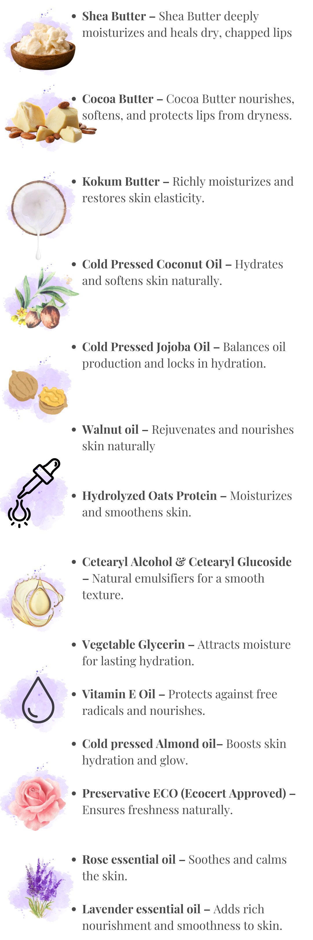 Cocoa Butter helps reduce dryness and improves skin texture